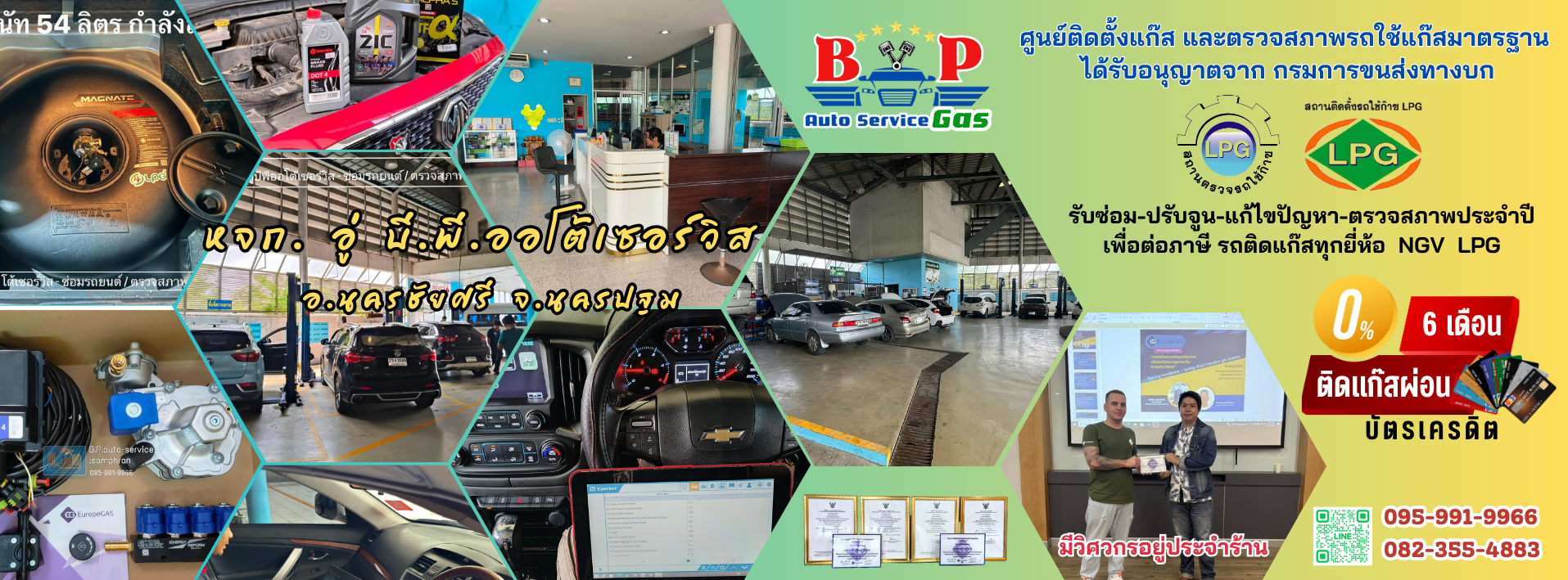 ศูนย์ติดตั้งแก๊ส และตรวจสภาพรถใช้แก๊ส LPG มาตรฐานผ่านการรับอนุญาตจากกรมการขนส่งทางบก ให้บริการติดตั้งแก๊ส LPG และตรวจสภาพรถใช้แก๊ส เพื่อต่อภาษีประจำปี และตรวจทดสอบถังแก๊สครบ 10 ปี (ต่ออายุ) รับออใบรับรองวิศวกรรับรองความมั่นคงแข็งแรง รถยนต์ดัดแปลงสภาพทุกชนิด